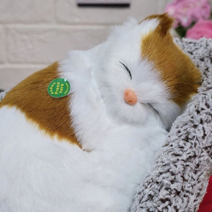 عروسک گربه خوابیده روی تشک – لطیف، بامزه و صدا دار!